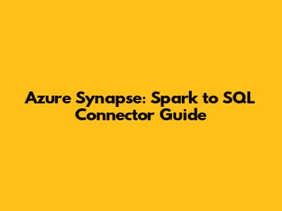 Azure Synapse: Spark To SQL Connector Guide
