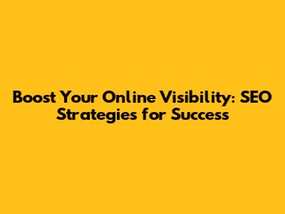 Boost Your Online Visibility: SEO Strategies For Success
