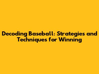 Decoding Baseball: Strategies And Techniques For Winning
