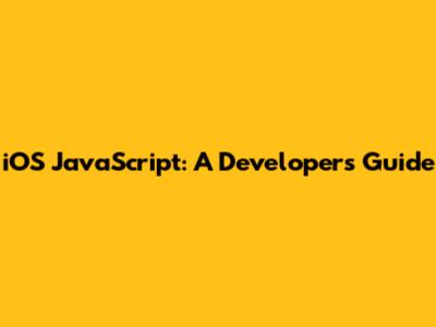 IOS JavaScript: A Developer's Guide