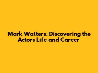 Mark Walters: Discovering The Actor's Life And Career
