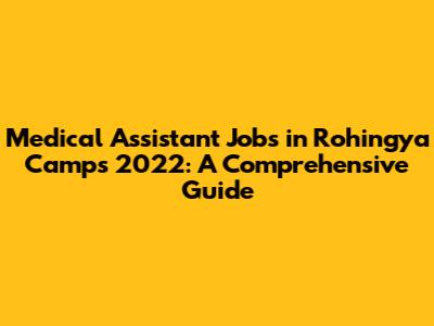 Medical Assistant Jobs In Rohingya Camps 2022