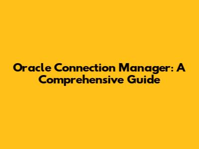 Oracle Connection Manager: A Comprehensive Guide