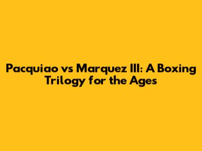 Pacquiao Vs Marquez III: A Boxing Trilogy For The Ages