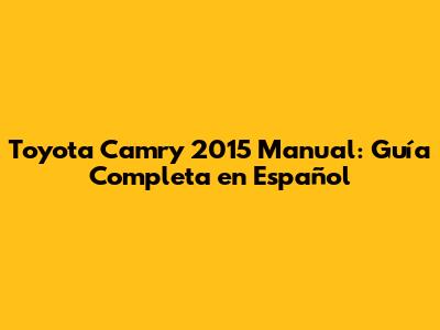 Toyota Camry 2015 Manual: Guía Completa En Español